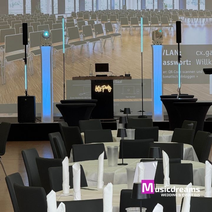 Moderne Eventtechnik, individuelle Musikgestaltung und ĂŒber 20 Jahre Erfahrung.